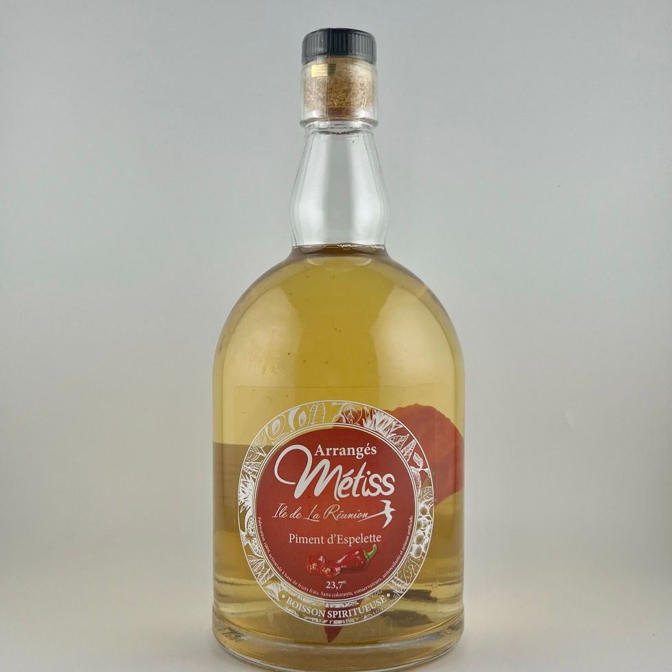 Sublimez vos papilles avec le rhum arrangé Piment d’Espelette 23.7°, une création audacieuse qui associe la puissance aromatique du piment d’Espelette au moelleux du rhum. Ce piment emblématique du Pays Basque apporte une chaleur douce et une pointe de complexité à chaque gorgée, sans écraser les saveurs du rhum.